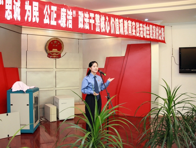 “仰望星空,也许自己只是其中一颗,不为发光,只为默默闪烁,因为我对检察事业爱得深沉。”侦监科最年轻的干警陈美虽然参加工作不久,但她通过对同事们平凡事例的深入思考理解了政法干警核心价值观的内涵,字里行间流淌着对检察事业的挚爱之情。演讲中,精彩的句子不胜枚举,但不管讲述的是身边的先进典型,还是亲身经历的事,无不是在歌颂我们平凡的检察干警对检察事业的无限忠诚;无论他们引用的是经典的名人名言,还是案件当事人一句朴实的话语,全都表明了检察官维护法律公正、执法为民的决心。