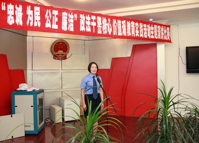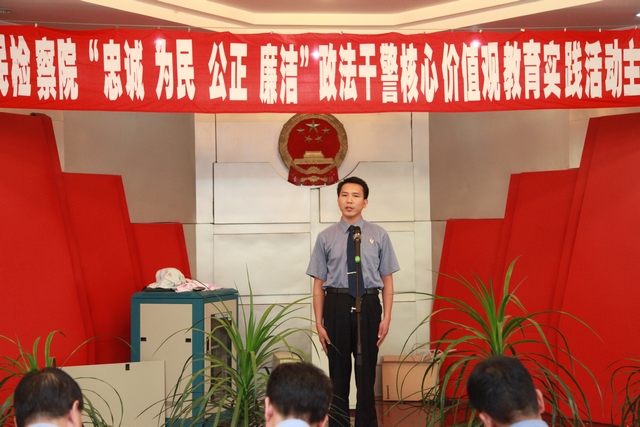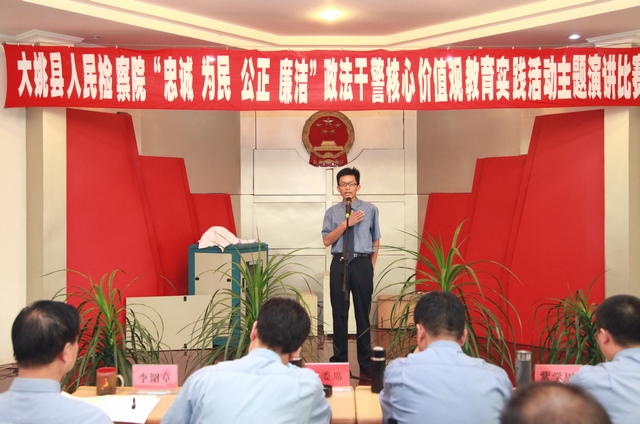 参赛选手们的演讲慷慨激昂,感人肺腑,他们从不同角度、不同侧面理解和诠释对政干警核心价值观的深刻认识和深切感悟,抒发了检察干警如何从小事做起、如何向先进模范学习、如何公正廉洁执法的无限情怀,歌颂了检察干警们对党的无限忠诚、对检察工作的深深热爱,充分展示了大姚检察官“忠诚、为民、公正、廉洁”的精神品质和职业操守。