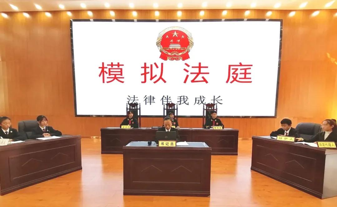 模拟法庭是法治教育实践性教学的重要方式,通过案情分析、角色划分、法律文书准备、预演、正式开庭等环节模拟刑事审判或仲裁的过程,学生们自己参演的仿真法庭,增加了法治教育的可听性、可学性、可信性,使原先枯燥乏味的法律条文变得生动有趣,使同学们近距离深刻理解了法律公平、公正、权威的精神内涵。
