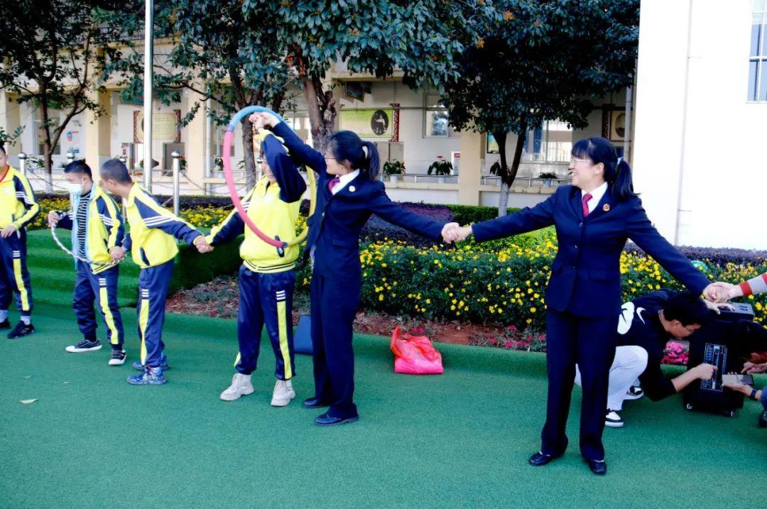 宣讲结束后,全校师生在社工老师的带领下,开展了户外团体活动,操场上,大家大手拉小手围成一个圈,这时没有了老师、学生、检察官,只有“家长”和孩子,身体过呼啦圈接龙、揪尾巴、开小火车......一个小时的活动孩子们玩得不亦乐乎,与一颗糖果的奖励、一句励志话语的鼓励相比,孩子们更多的是收获了来自社会大家庭的关爱和温暖。下步工作中,“阿渡工作室”将继续密切与学校及相关部门的联系与合作,在犯罪预防、权益保护、关爱救助等方面形成对未成年人的保护合力,不断将“法治进校园”活动向纵深推进,为护航未成年人健康成长奉献力量、传递温情。