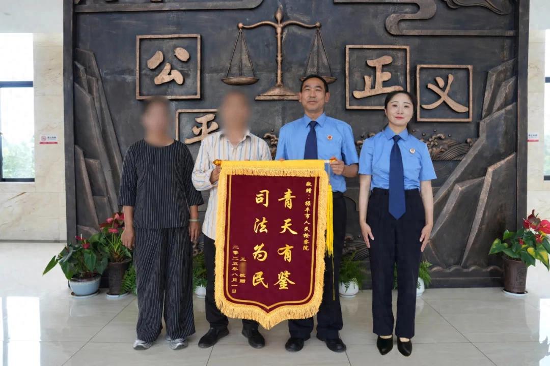 2025年8月1日,薛某某诈骗案的被害人父母将一面写着“青天有鉴,司法为民”的锦旗送到禄丰市检察院,为检察官在办案中恪守司法为民点赞。