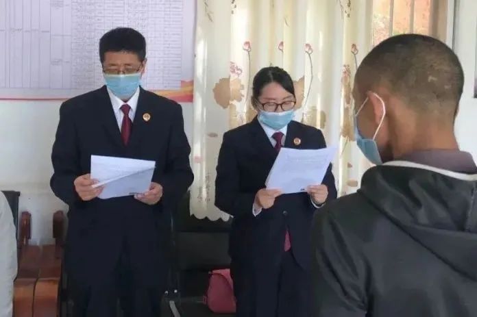 3月12日,牟定县人民检察院的检察官一行六人,来到了涉案的两名未成年人户籍所在地姚安县某村村委会,向他们宣布不起诉决定并进行现场教育训导。