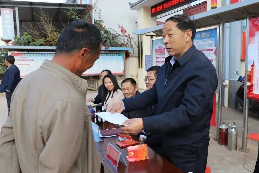 在第七个国家宪法日到来之际,南华县人民检察院深入龙川镇二街社区开展“学习习近平法治思想,强化新时代法律监督”检察开放日活动。全国人大代表窦正宝和部分县政协委员、基层法律工作者、人民监督员受邀同检察官一起走进乡村,走到百姓中间,宣传法律知识。