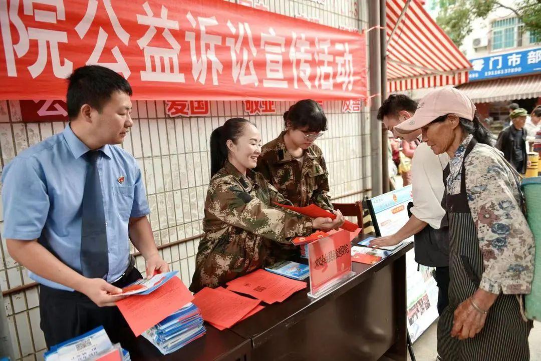 检察人员与管护局工作人员还到嘉镇开展普法宣传,悬挂宣传条幅,设置咨询台,发放宣传资料,向群众宣传法律知识及保护绿孔雀栖息地的重要意义。