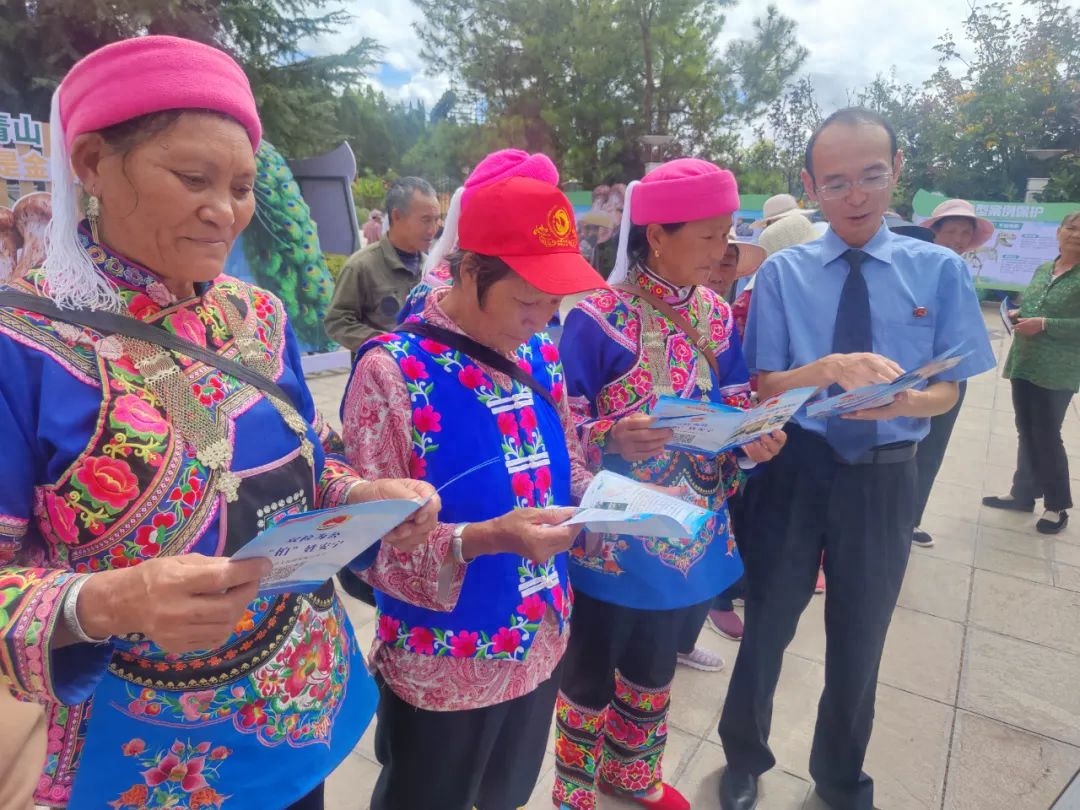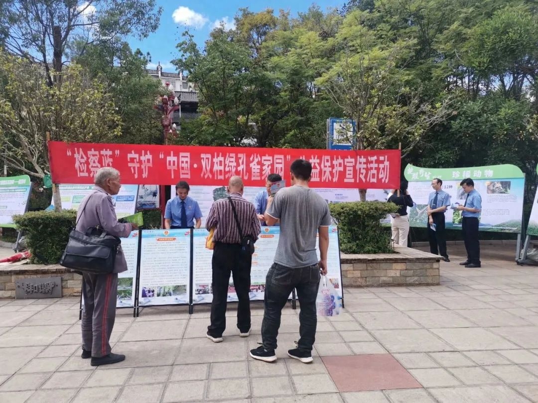 9月20日,双柏县检察院干警以“检察蓝”守护“中国·双柏绿孔雀家园”公益保护为主题,到人员聚集量大的查姆文化广场开展绿孔雀保护普法宣传。通过“摆摊设点”、悬挂宣传条幅、设立宣传展板、走访群众等方式,向群众发放绿孔雀公益保护宣传资料,并向群众耐心讲解与生活相关的公益诉讼法律知识及保护绿孔雀的意义。