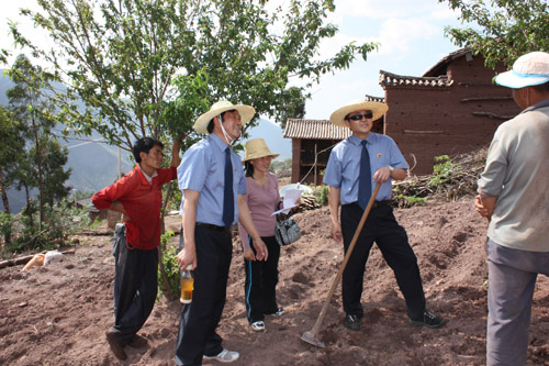 在插甸乡,蔡副检察长、刘存云局长带领工作队员顶着炎炎烈日,翻山越岭,步行二十余公里,走村串户,挨家挨户深入走访对象家中,与群众亲切交谈,认真倾听群众的心声,并到田间地头,同群众一同劳动。蔡副检察长一行还慰问看望困难老党员、困难群众和困难学生家庭各一户,每户送上慰问金500元。