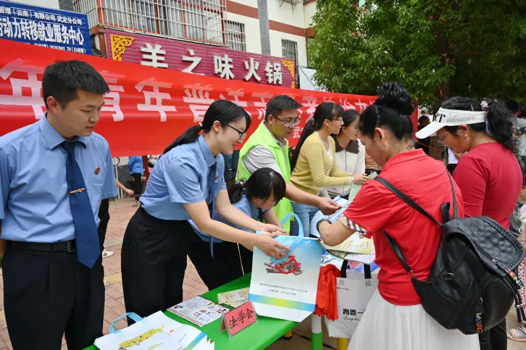 普法工作队员在普法宣传活动现场向群众发放了普法宣传资料,积极向群众宣传检察机关深入开展“检护民生”专项行动工作要求,讲解了相关法律法规和政策,内容涵盖了预防未成年人违法犯罪、未成年人保护、禁毒防艾、防范电信诈骗以及民事和行政检察、公益诉讼检察等法律知识、办案要求。
