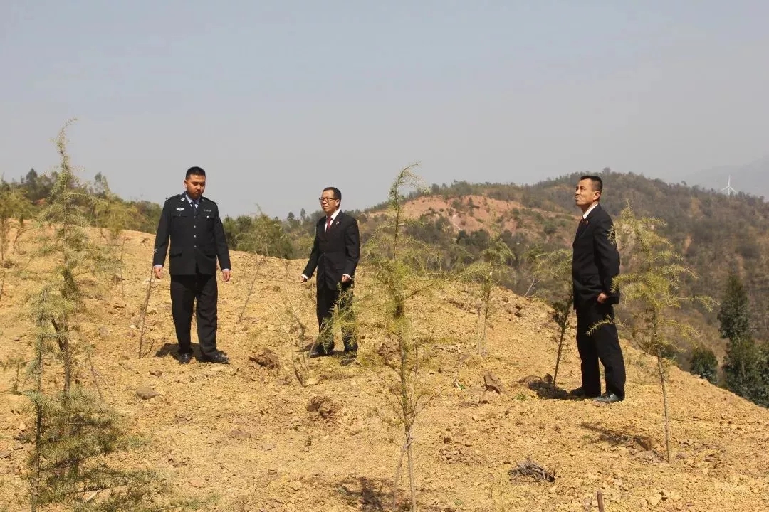 民行科三名干警驱车20余公里深入大山深处邱某某滥伐林木案现场,调查了解一年来邱某某恢复林地状况,邱某某作为低效林改造的企业负责人,经民行科三名干警2018年8月通过进行督促林地恢复以来,已种值了红豆彬、核桃等经济林木,经过冬天的洗礼,现在绝大多数已经成活,长出了嫩嫩的绿叶。如今,邱某某也认识到企业发展与生态保护同等重要,称赞我们办案既保护了企业的合法权益,又保护了生态环境,做到了双赢共赢多赢。