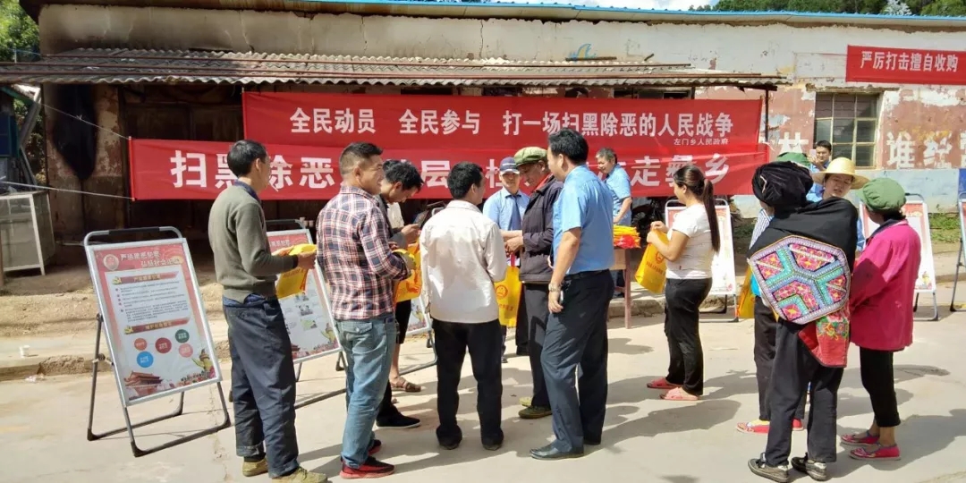 针对左门乡居民较为分散的特点,干警们分成3个活动小组,深入校园、站所、村委会和村民活动场所,开展了一场互动式、多样化的宣传发动工作。通过走访林业草原、农机农技、烟叶收购等站所和左门部分村委会群众,检察干警俯下身子与基层工作人员和基层群众拉家常、讲政策、说形势,宣传检察机关扫黑除恶战果,倾听基层干部和群众心声,回应大家关切的焦点和问题,并发放宣传环保袋200个、宣传单500余份。
