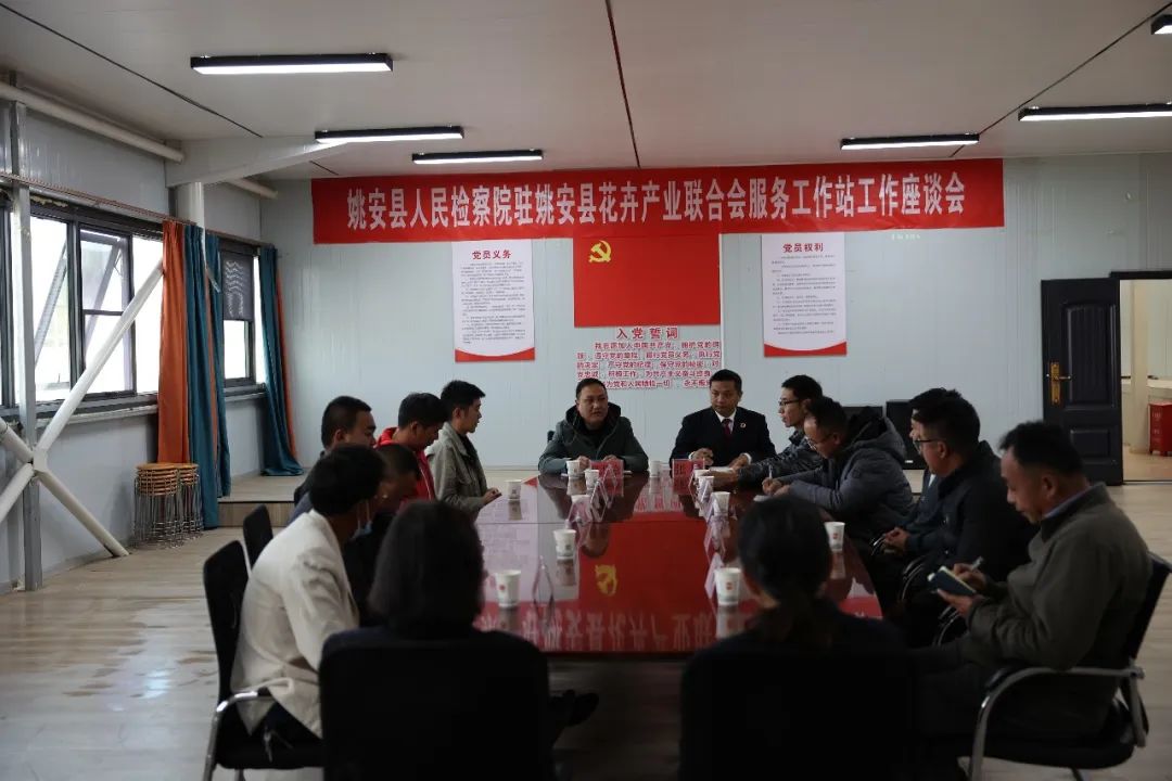 揭牌仪式后召开了姚安县检察院驻姚安县花卉产业联合会服务工作站工作座谈会。会上,张松全面介绍了近年来姚安县检察院保障和服务营造一流营商环境所采取的各项举措,以及在推进保障和服务营造一流营商环境方面开展的工作情况、取得的工作实效,全面解读《姚安县人民检察院姚安县花卉产业联合会关于检察机关驻花卉产业联合会服务工作站工作方案》,并介绍了成立服务工作站的重要意义。