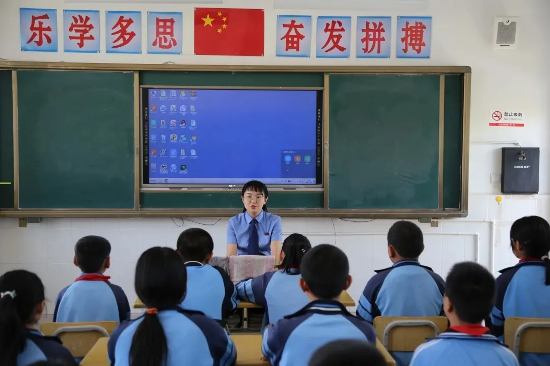 法治课上,检察官们向同学们讲述了校园欺凌的危害以及可能承担的法律责任,以问答互动和情景模拟的形式向同学们讲述了如何预防校园欺凌及遇到校园欺凌时如何自救等知识。让同学们在活泼的氛围中收获了法律知识、增强了自信和勇气、提高了安全防范意识。