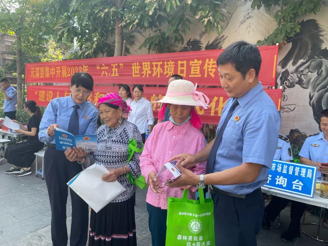 近日,元谋县2023年“6·5世界环境日”集中宣传活动出现了“检察蓝”的身影,他们通过发放宣传资料、解答群众咨询等方式积极开展普法宣传活动。检察干警为前来咨询的群众普及污染防治等环保知识,并结合公益诉讼职能开展以案释法,为群众答疑解惑,倡导群众发现污染生态环境、非法开采自然资源、非法捕捞等破坏自然环境的违法行为时积极向相关部门举报,共护我们的家园。