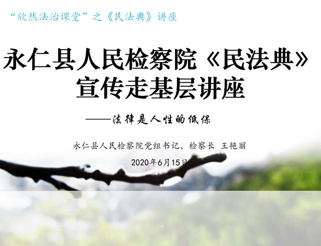 讲座中,王艳丽检察长首先向大家介绍了检察机关的主要职能职责及永仁县“欣然法治课堂”品牌建设情况。随后,讲座以一句孟德斯鸠《论法的精神》中的“在民法慈母般的眼里,每一个人就是整个国家”引入主题,从与人们生活息息相关的70年产权到期后可续期、见义勇为可免责、饲养宠物要谨慎、高利放贷受禁止、个人隐私保护更严格、离婚有了冷静期、对霸座行为要说“不”、虚拟财产受保护、婚内单方举债要分清等《民法典》的九个亮点,结合生动形象的案例,让大家体会到了《民法典》维护公民权益的重要意义。最后,根据民兵中有许多是村组干部、护林员等情况,王艳丽检察长结合生活、工作实际,以案释法讲解了常见的危险驾驶罪,杀害珍贵、濒危野生动物罪,野外用火涉嫌放火罪、失火罪等刑事犯罪的几种类型,特别是今年以来办理的王某某在钓鱼间隙用随身携带的弹弓将一只猫头鹰捕杀,随后将其手拿弹弓和猫头鹰的视频上传到网络社交媒体平台一案,警示大家要保护野生动物资源和生态环境,告诫大家要遵纪守法,敢于同犯罪行为作斗争,用法律维护自己的权益。