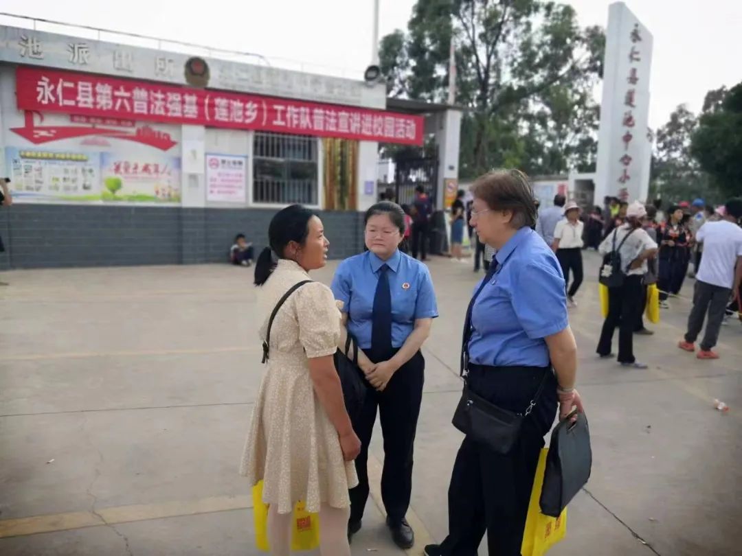 近日,在永仁县莲池中心小学校门口,永仁县检察院的检察官与家长们来了一波“阳光下的对话”。检察官们充分利用每周家长到学校接孩子等候的空隙,为家长们送上法治课,向家长普法,让普法宣讲进校园不误“学时”、不误“农时”。