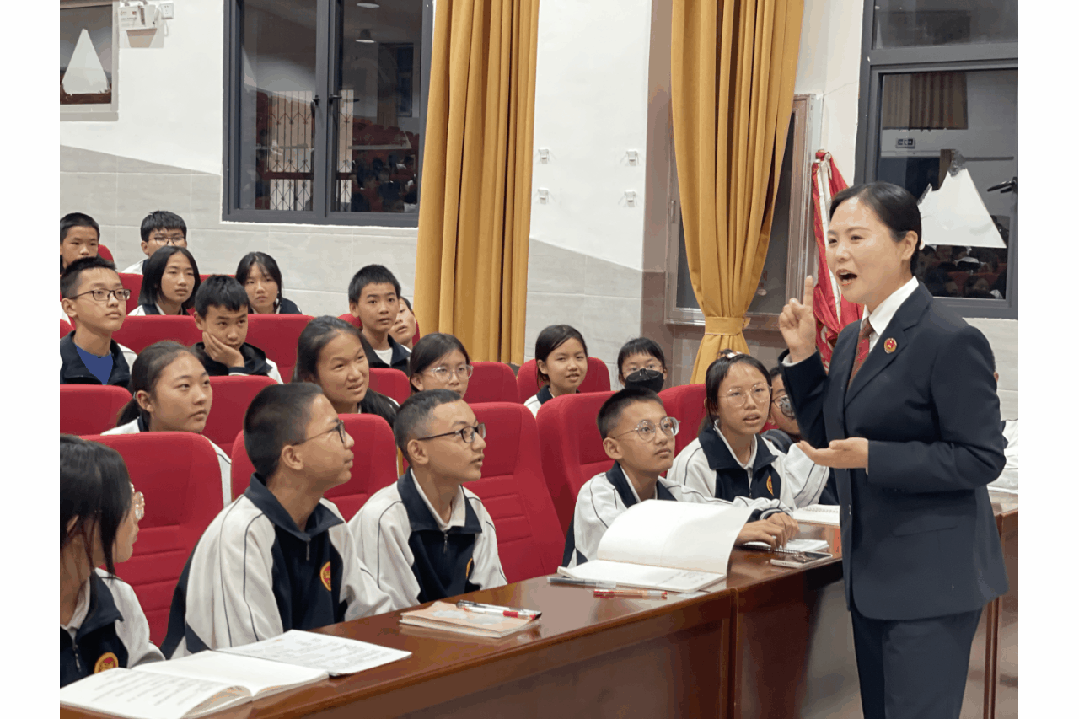 成立“欣然法治宣讲团”,检察官定期到县内各学校及挂包乡镇开展授课。在校园,检察官结合典型案件,用通俗易懂的语言,以互动提问等方式教会未成年人如何保护自己;在乡镇,检察官针对重点人群,通过法治“小课堂”等方式,把如何处理邻里、婚恋、经济等纠纷,以及危险驾驶的危害等群众最关心的法律知识送到他们身边。
