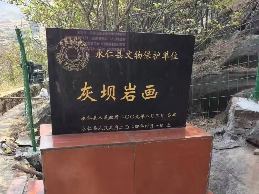 岩画是一种石刻文化,是人类社会的早期文化现象,是人类先民们给后人的珍贵的财富。位于永仁县永兴乡的灰坝岩画是我州目前被确认的唯一一处岩画,是研究金沙江流域史前社会形态、精神生活、物质生活的重要历史文化资料,非常具有保护价值。