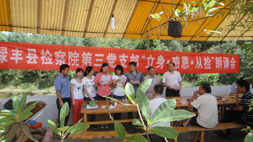 值党的九十一华诞来临之际,为了庆祝建党节,激发广大党员干警的感恩之心和爱党热情,并转化为建设检察事业的实际行动,禄丰县检察院第三党支部、工会小组结合感恩教育活动,在党员干警中开展了“立身·从检·感恩”朗诵会活动。朗诵会在青年干警激情洋溢的《学会感恩》诗歌中拉开了序幕,大家纷纷以充满感恩的心满含深情抒发了对祖国、党、父母、师长、朋友的真切情感。《歌颂党》、《学会感恩》、《感恩的心》、《党啊,亲爱的妈妈》等多篇诗歌和散文,讴歌了对伟大祖国的热爱和对检察事业的忠诚,表达了检察人员对中国共产党九十一华诞的真挚祝福,阐释了捍卫法律尊严、维护公平正义的执着追求,充分展示了检察队伍团结一心、奋发向上的精神风貌。全体党员纷纷表示建党节活动意义新颖深刻,大家会坚定信念,加强学习,开拓创新,提高自身素质,争做学习型党员,形成同心同德干事创业的良好氛围,以更好的成绩为党旗再添光彩。