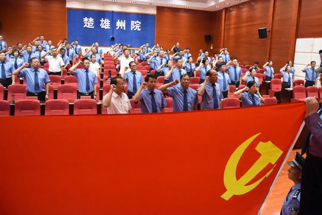 在庆祝大会上,院党组书记、检察长肖洁同志带领全体党员重温入党誓词,铭记初心与使命,坚定信念与决心。机关党委副书记华明昌同志带领新党员进行入党宣誓,以庄重的仪式向新党员传承党的精神、传导党员责任。