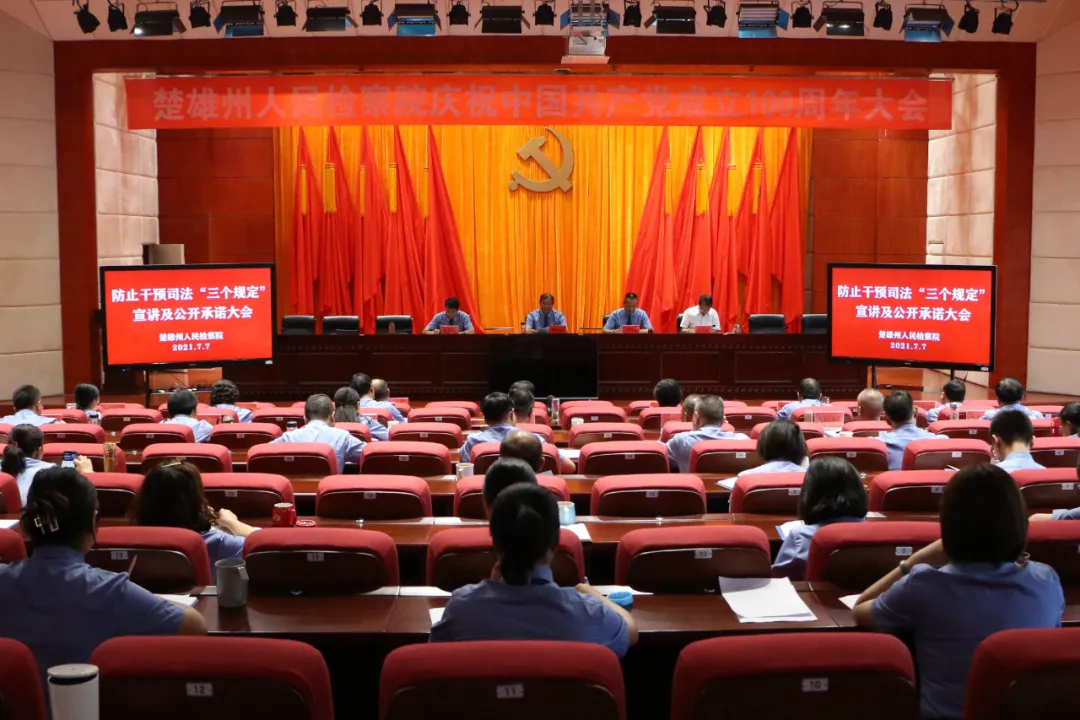 为认真落实政法队伍教育整顿“三项重点”工作和“三个专项”工作要求,7月7日下午,楚雄州检察院召开教育整顿防止干预司法“三个规定”宣讲和公开承诺大会。楚雄州检察院党组成员、副检察长刘存云在大会上作防止干预司法“三个规定”宣讲。院党组成员、政治部主任张洪顺主持会议。州检察院全体检察人员参加会议。