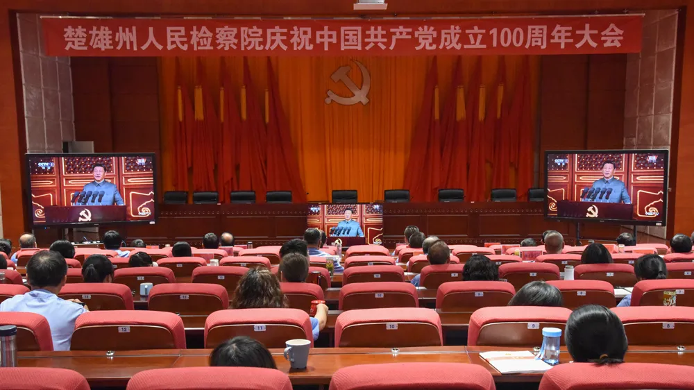 7月1日,楚雄州人民检察院认真组织全体检察人员集中收看庆祝中国共产党成立100周年大会,通过观看大会全程直播,聆听习近平总书记重要讲话,全体检察人员深刻认识了中华民族百年来的巨大变革和中国共产党取得的历史性成就,认真领会了以史为鉴、开创未来的历史性要求,为统一思想和行动打下基础。