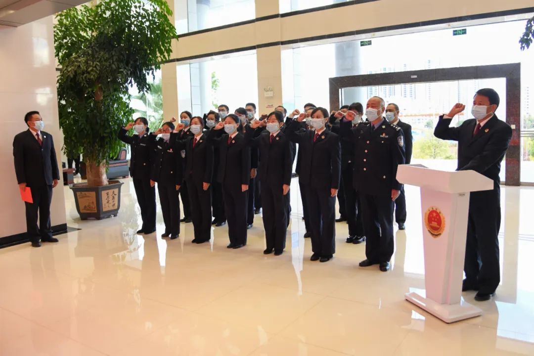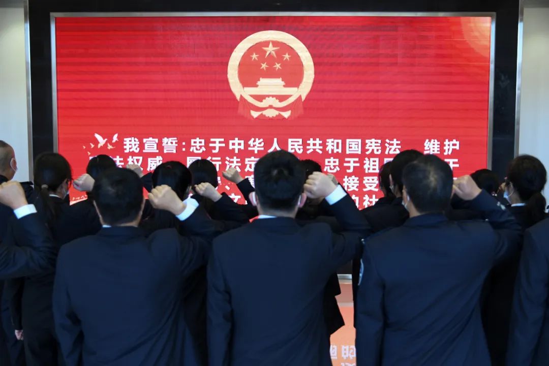 庄重的誓词字字句句都充满着力量,参加宣誓仪式的领导干部、干警同志们表示将时刻牢记誓词,拥护宪法,遵守宪法,弘扬宪法精神,坚决担负起党中央和宪法赋予的职责使命,以忠诚干净担当的实际行动,为全面建设社会主义现代化国家、全面推进中华民族伟大复兴营造良好法治环境。