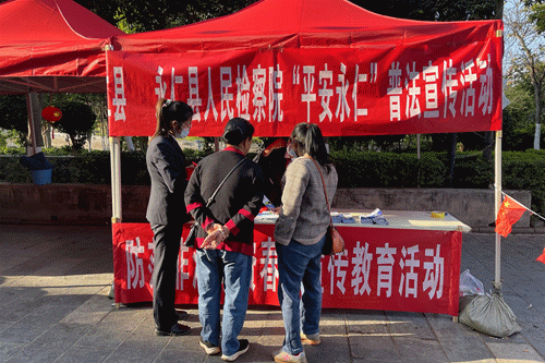 为持续提升人民群众防范非法集资意识、让群众主动远离非法集资陷阱,拒绝非法集资行为,过一个安全祥和的新春佳节。1月17日,永仁县检察院组织干警到永仁古城年货街开展防范非法集资春节普法宣传教育活动。