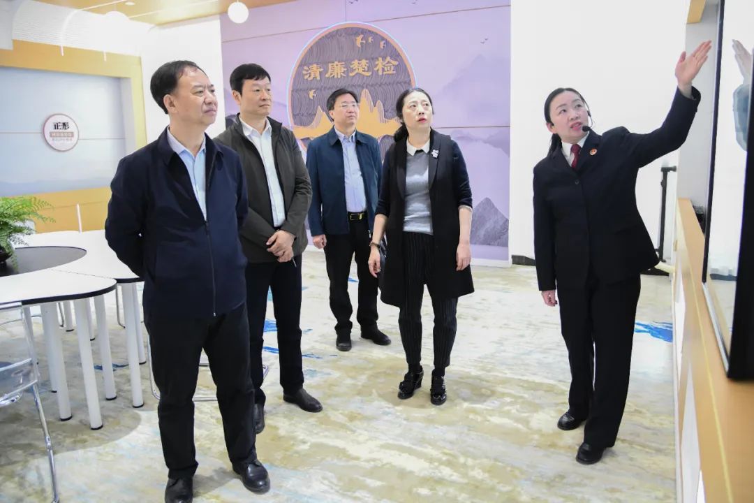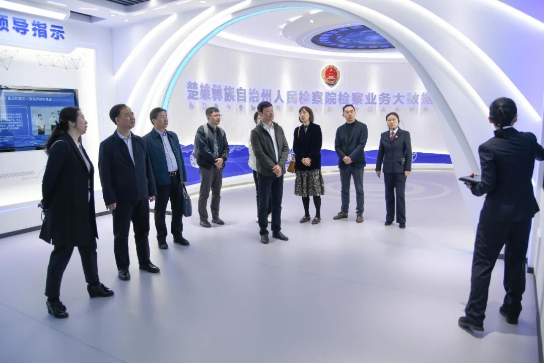 张尚清一行实地参观了楚雄州检察院12309检察服务中心、未成年人检察工作办案区、检察听证室、党建文化长廊、党建书屋、检察业务大数据中心、“楚检护企”工作室、“清廉楚检机关”工作室等地。(杨宇/文 杨清越/图)