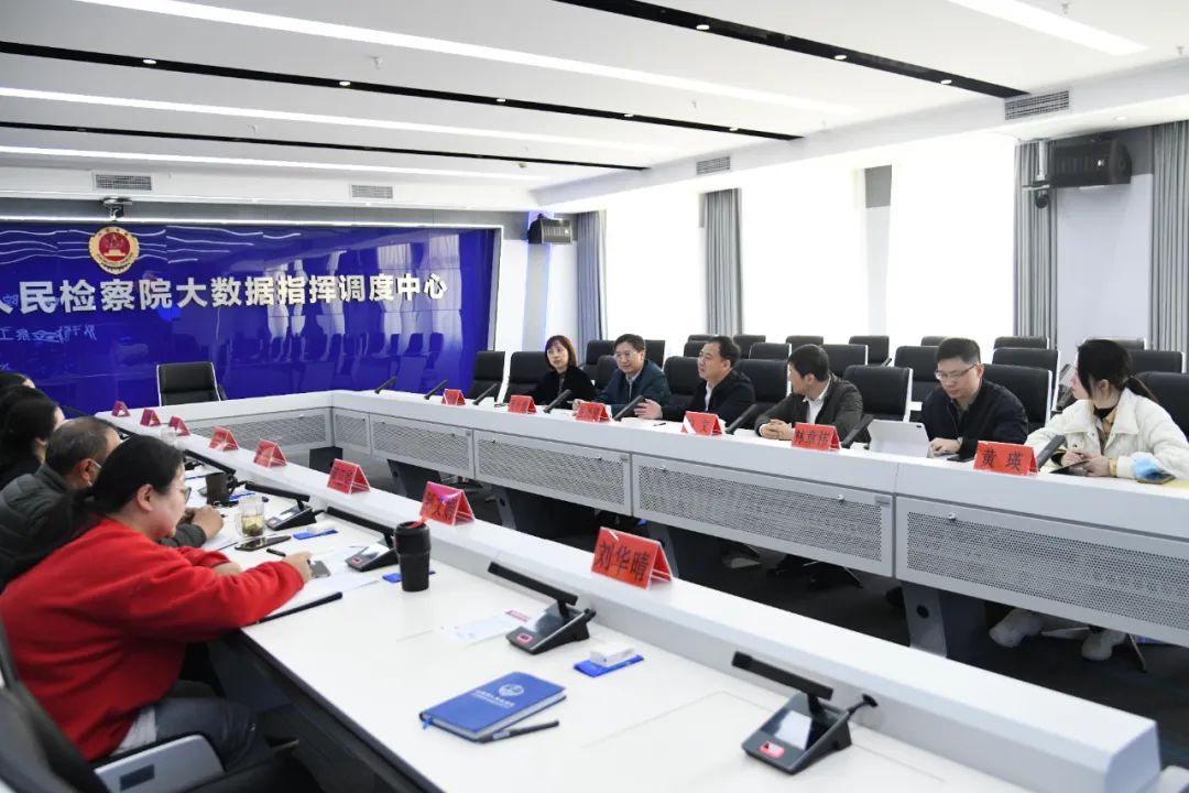 在楚雄州检察院检察业务大数据指挥调度中心,两院数字检察专班人员交流分享了数据融通和数据建模情况,了解了楚雄州检察院“内部数据整合、外部数据融通、数据智慧建模”三步走模式。为实现海量数据的抓取运用,楚雄州检察院积极争取州委、各单位的支持,大数据平台建成后,已有37个州级单位在楚雄州检察院的大数据平台上建起了自己的数据池,形成良性监督模式。