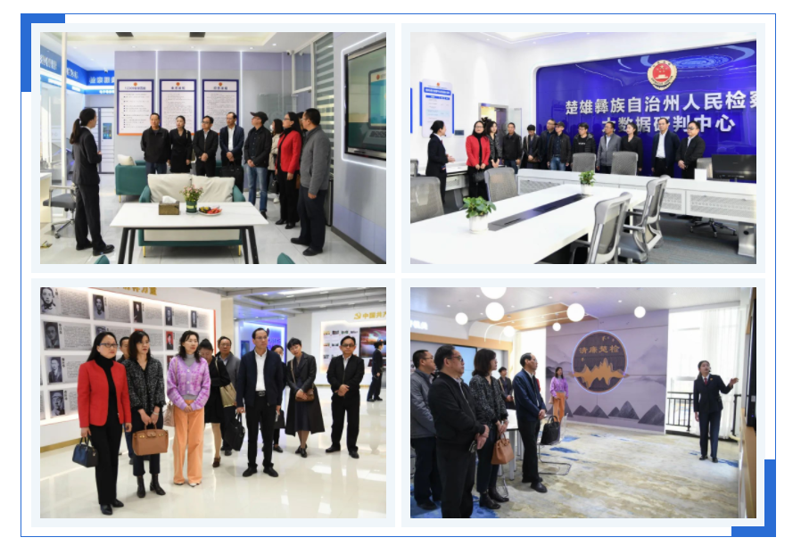 活动中,参会人员实地参观了楚雄州检察院12309检察服务中心、党建文化长廊、大数据展示中心、“楚检护企”工作室、“检聚民亲”工作室、“清廉楚检”工作室等。