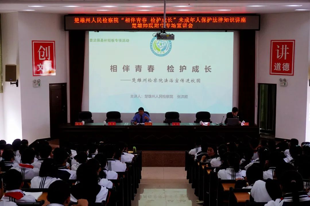 近日,楚雄州检察院副检察长、楚雄师院附中法治副校张洪顺到楚雄师院附中开展未成年人保护综合法治讲座。