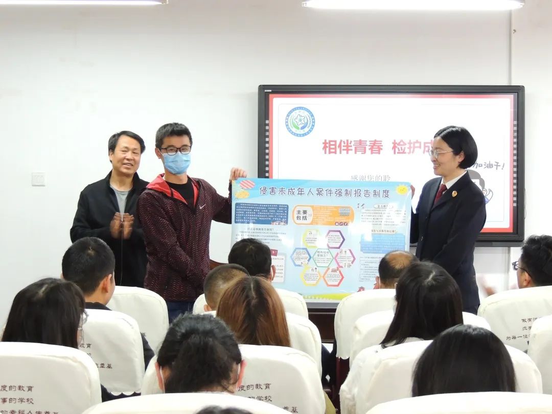讲座结束后,楚雄州检察院未检团队向学校赠送了未成年人保护法、预防未成年人犯罪法和强制报告制度法律知识海报,赠送了防校园欺凌、防性侵等宣传册。