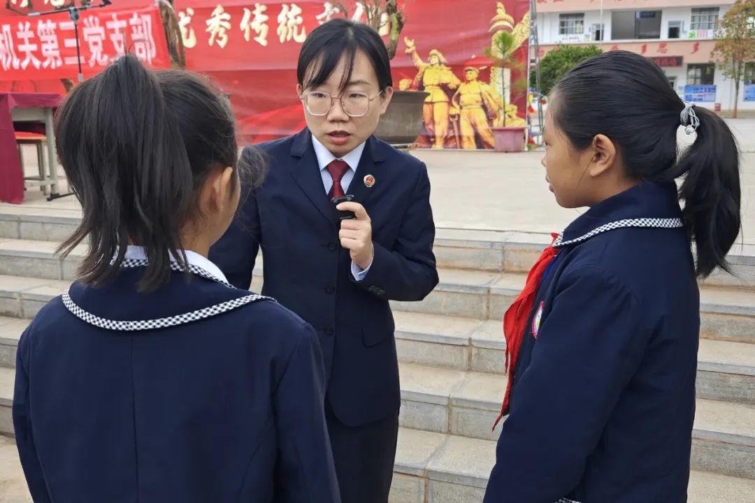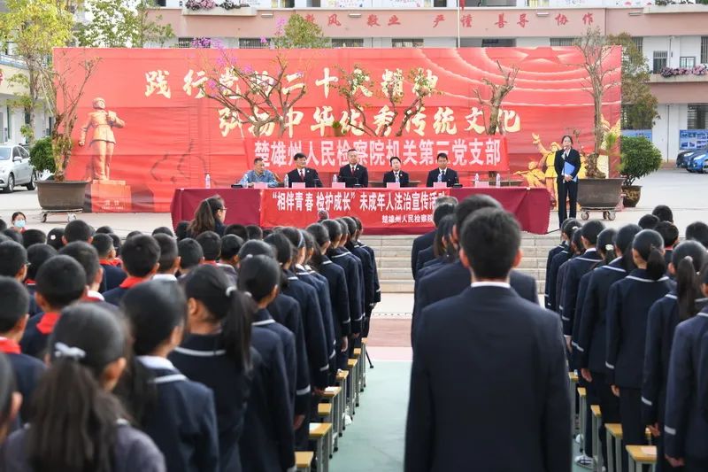 近日,楚雄州检察院第三党支部与楚雄市委政法委、楚雄市公安局,共同走进楚雄市鹿城镇中心小学,开展“相伴青春 检护成长”未成年人法治宣传活动。用“听看问——讲解答”多元宣讲模式,激发同学们认识和学习法律知识的主动性及守法用法护法的自觉性,获得了学校师生的一致好评。