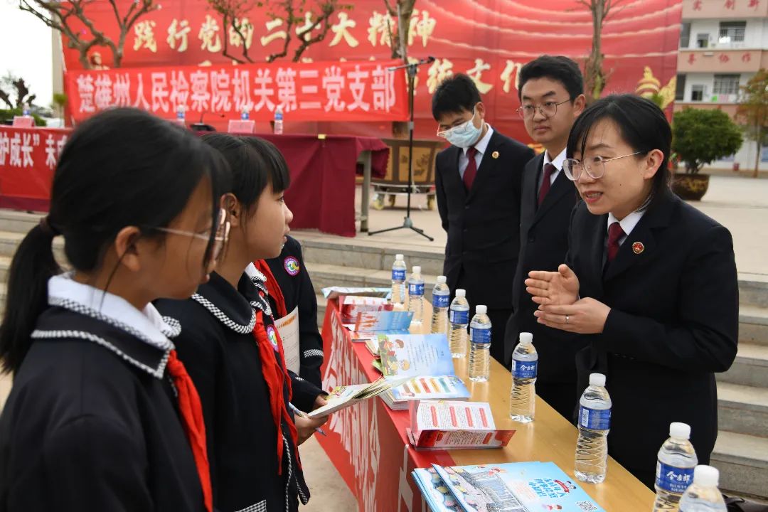 为切实推动普法强基补短板专项行动走深走实,增强广大群众“学法、懂法、守法、用法”意识,楚雄州检察院积极探索“党建+普法”工作模式。连日来,楚雄州检察院第三党支部深入学校、社区等地开展多维度精准普法。