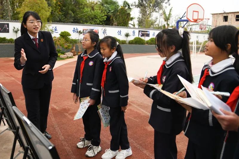 在楚雄市鹿城镇中心小学,楚雄州检察院干警通过讲座、观看模型、发放宣传手册、带领同学观看展板、答疑释法等“听看问——讲解答”多元宣讲模式开展活动,激发同学们学习法律知识的主动性及守法用法护法的自觉性。