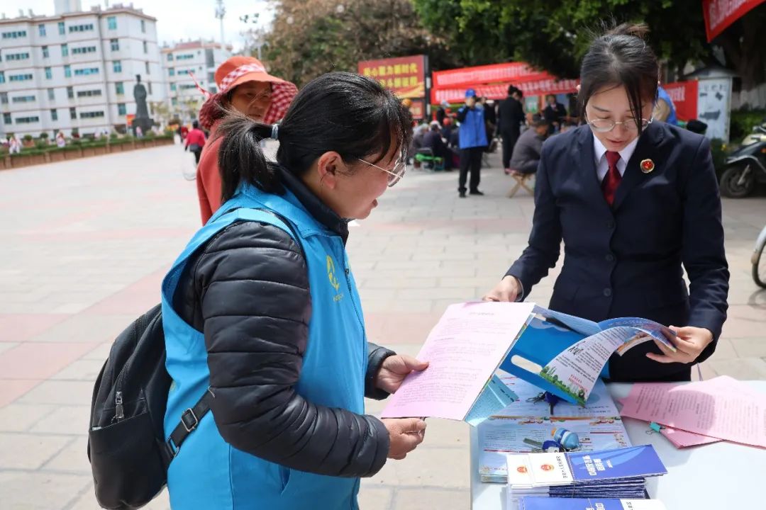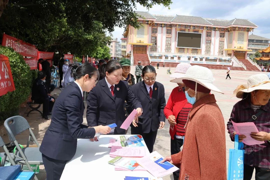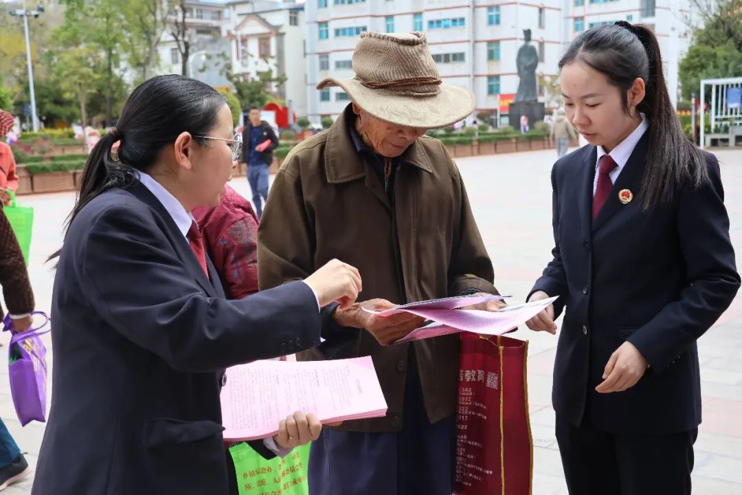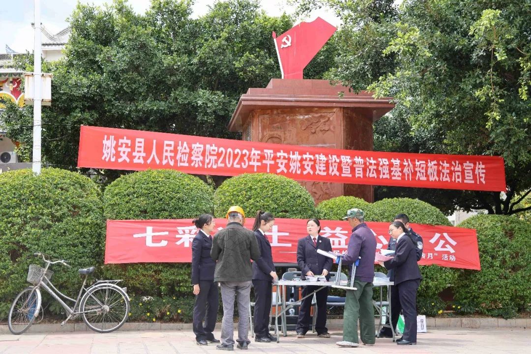 在姚安梅葛广场,姚安县检察院重点对预防未成年人犯罪、电信网络诈骗、养老诈骗等向当地群众开展宣传,通过与群众“面对面”交流、“零距离”普法,真正做到消除群众法治盲点、解答群众法律困惑。