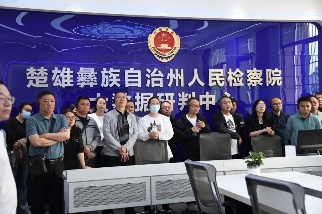 在楚雄州检察院检察业务大数据中心,讲解员介绍了“数智楚雄”检察大数据品牌建设工作情况,大数据平台的建设理念,以及全州检察机关运用该平台的实际效果。