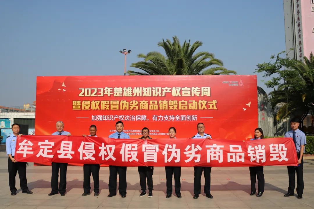为增强全社会“尊重知识、崇尚创新、诚信守法”的知识产权意识,进一步营造打击侵权假冒伪劣商品氛围。近日,楚雄州检察院与州县市场监督管理局、牟定县检察院、楚雄市民检察院等部门在楚雄市桃园湖广场参加2023年楚雄州知识产权宣传周暨侵权假冒伪劣商品销毁启动仪式。