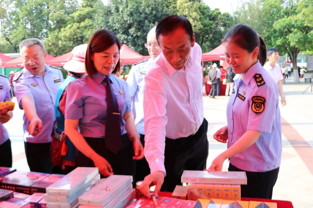 在打击侵权假冒伪劣商品宣传活动过程中,检察干警热情地给群众发放宣传资料,认真倾听群众疑惑,耐心解答群众咨询;在展示查获的假药、假烟、假酒、假种子等假商品过程中,通过典型案例以案释法,围绕侵犯知识产权和制售假冒伪劣商品的罪名,侵权和假冒伪劣商品对国家、对社会、对人民群众的危害等方面,宣传了打击侵权假冒保护知识产权的重要性,引导市民群众增强保护知识产权、抵制假冒伪劣商品意识;现场还组织开展了销毁假烟、假酒、假药等伪劣商品活动。
