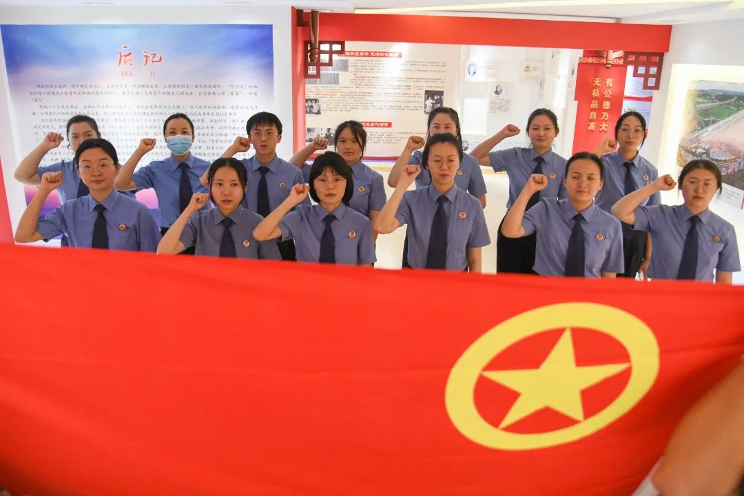 州院机关青年同志集体重温入团誓词,青年们面向团旗,高举右拳,进行庄严宣誓,铿锵有力的誓词激励着检察青年传承红色基因,以不畏艰难、勇于担当的姿态,迎接新时代的挑战,引导着检察青年胸怀理想、勇于担当,立足岗位贡献青春智慧。