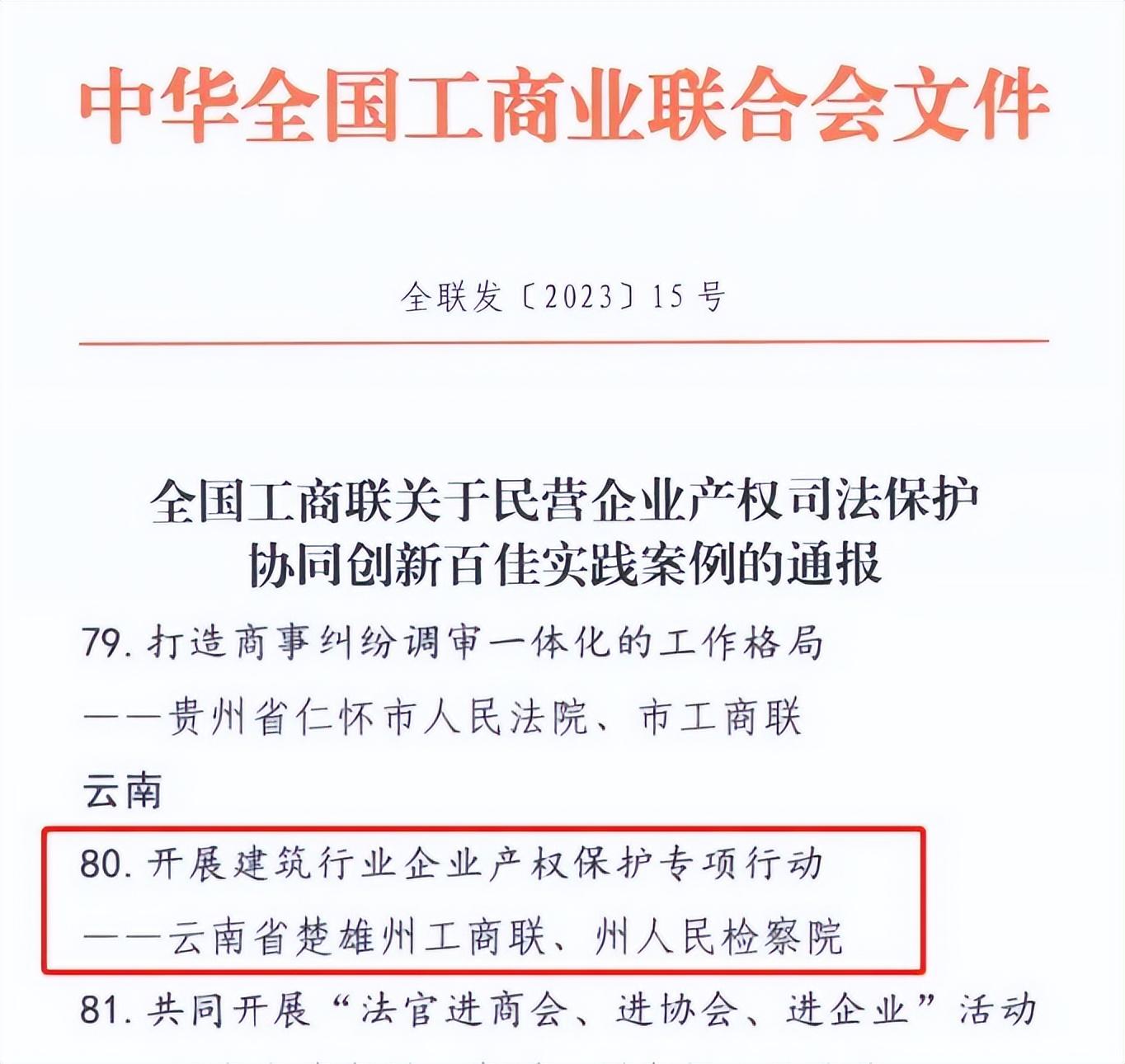 通过案件初步分析研判,认为可能存在利用工程管理体系缺失、施工管理混乱等漏洞,采取捏造事实、伪造证据提起民事诉讼的方式获取不当利益,并利用管辖规则进行异地诉讼,使本地被告企业应诉难度加大的情况。与此同时,楚雄州工商联积极发挥服务和协商作用,将了解掌握到的建筑企业遭遇虚假诉讼问题及时反映到检察机关,并联合开展建筑行业企业产权保护专项行动,凝聚保护企业权益的工作合力。