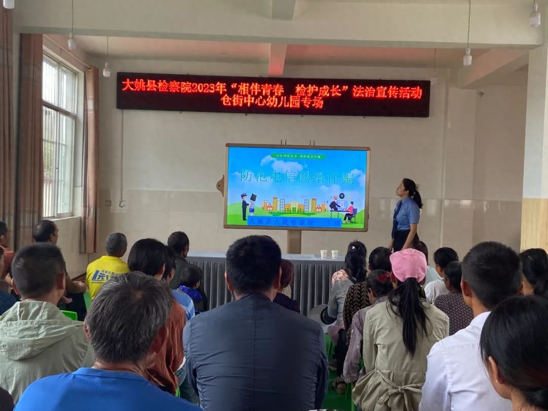 近日,大姚县检察院的“蓝老师”走进大姚县金碧镇仓街中心幼儿园,给家长们带了一堂量身定制的防范电信诈骗的法治课。