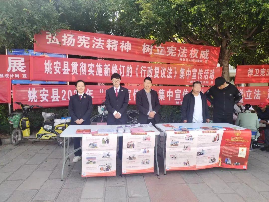 12月4日,禄丰、双柏、武定、永仁、姚安、大姚县检察院分别到公园、社区开展“宪法宣传周”系列活动。活动现场,各院检察干警通过设置法律咨询台、悬挂横幅、摆放展板、发放宣传材料等方式,向群众宣传了宪法、民法典、 防范电信网络诈骗等法律知识,还结合典型案例深入浅出的释法说理,引导群众遇事找法、解决问题用法,做到“与善为伴,与法同行”。