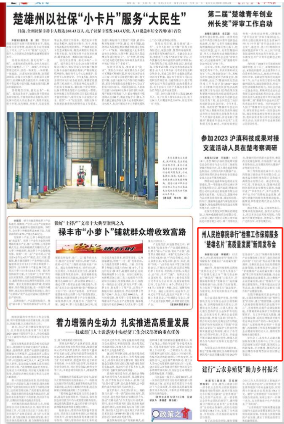 12月15日,州人民检察院举行“检察工作保障服务‘楚雄名片’高质量发展”新闻发布会。