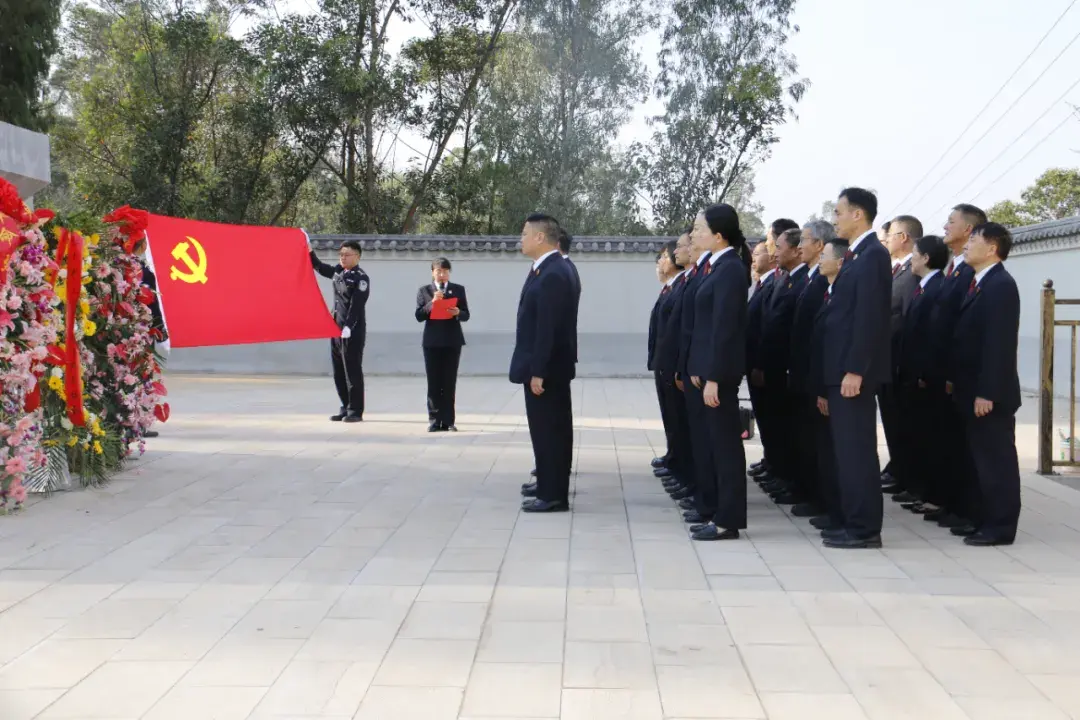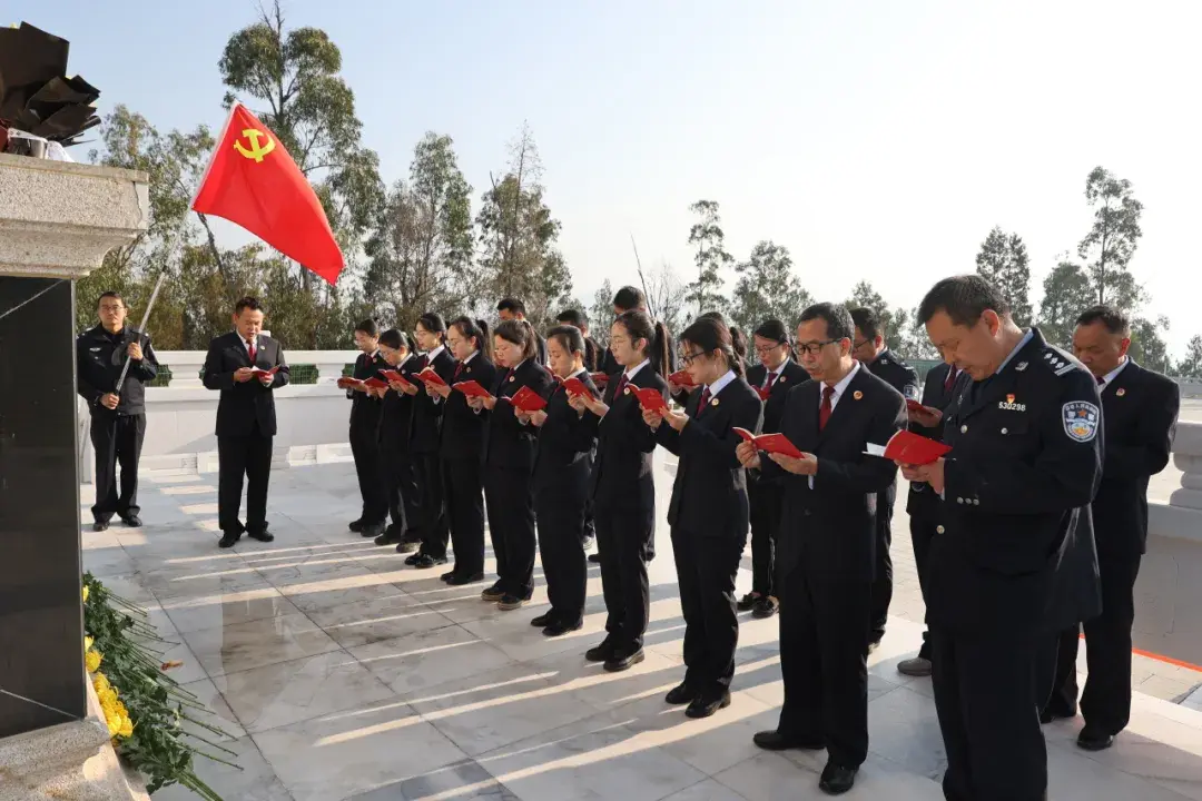 姚安县检察院组织全体党员开展“缅怀革命先烈 捍卫国家安全”主题党日活动。在庄严的烈士纪念碑前,全体党员整齐列队,向革命先烈鞠躬致敬,敬献鲜花,瞻仰英雄事迹,并在烈士纪念碑下庄严地重温了入党誓词,诵读《中国共产党章程》(节选)。在致敬英烈中传承红色基因,在抚今追昔中坚定前行意志。