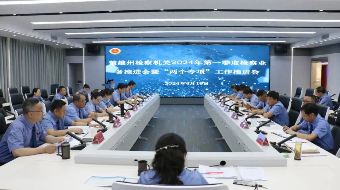 4月19日上午,楚雄州检察院召开2024年第一季度全州检察业务暨“两个专项”工作推进会,检视第一季度工作情况,把脉新要求、新指标下全州检察工作质效,确保全面目标有序推进。