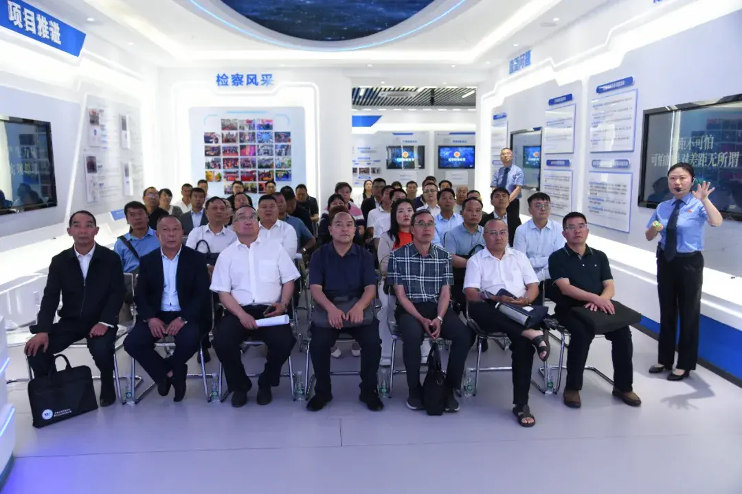 楚雄州检察院组织开展了"检察护企"检察开放日活动,与会人员到检察业务大数据展示中心开展研讨交流。