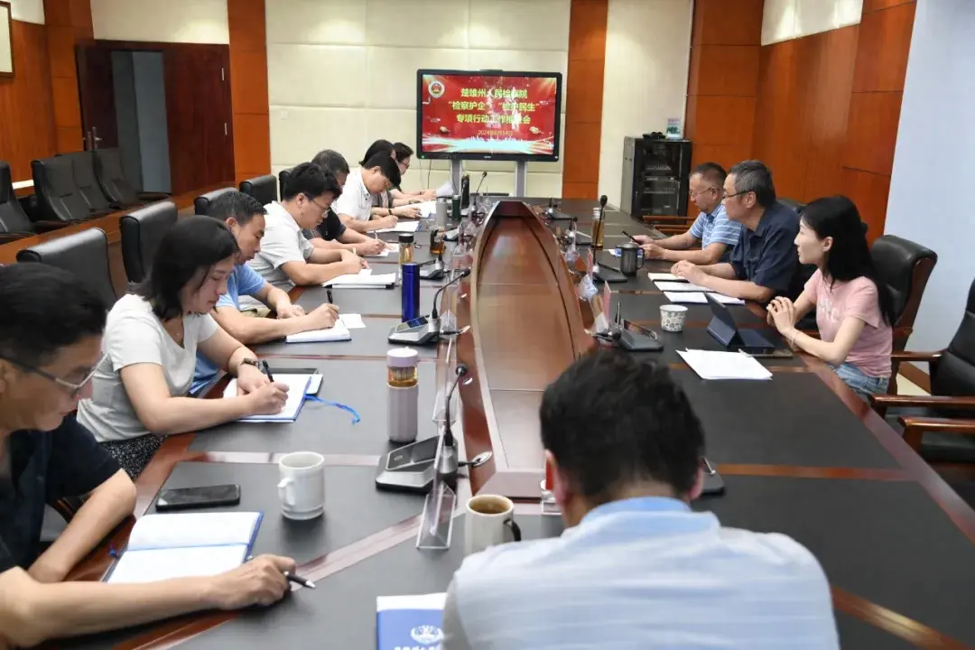 6月14日,楚雄州人民检察院召开“检察护企”“检护民生”专项行动工作推进会。会议由州院党组副书记、副检察长刘震乾主持,各内设部门负责人参加。