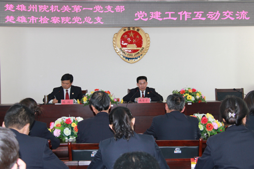 12月12日下午,州院机关第一党支部全体党员与楚雄市检察院党总支全体党员以“深入学习十八大精神”为主题,开展党员互动交流活动。