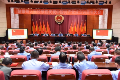 为庆祝中国共产党成立96周年, 6月30日,楚雄州人民检察院举办了 “庆七一、喜迎十九大”主题活动。活动由州检察院机关党委副书记华明昌同志主持,州检察院机关全体干警参加活动。此次活动以举行一场入党宣誓仪式、表彰一批先进典型、举办一场专题党课、观看一部革命题材影片“四个一”为主要内容,活动形式多样,内容丰富,对持续推进州检察院机关“两学一做”学习教育常态化制度化,努力提升机关党组织的凝聚力和战斗力具有积极意义。