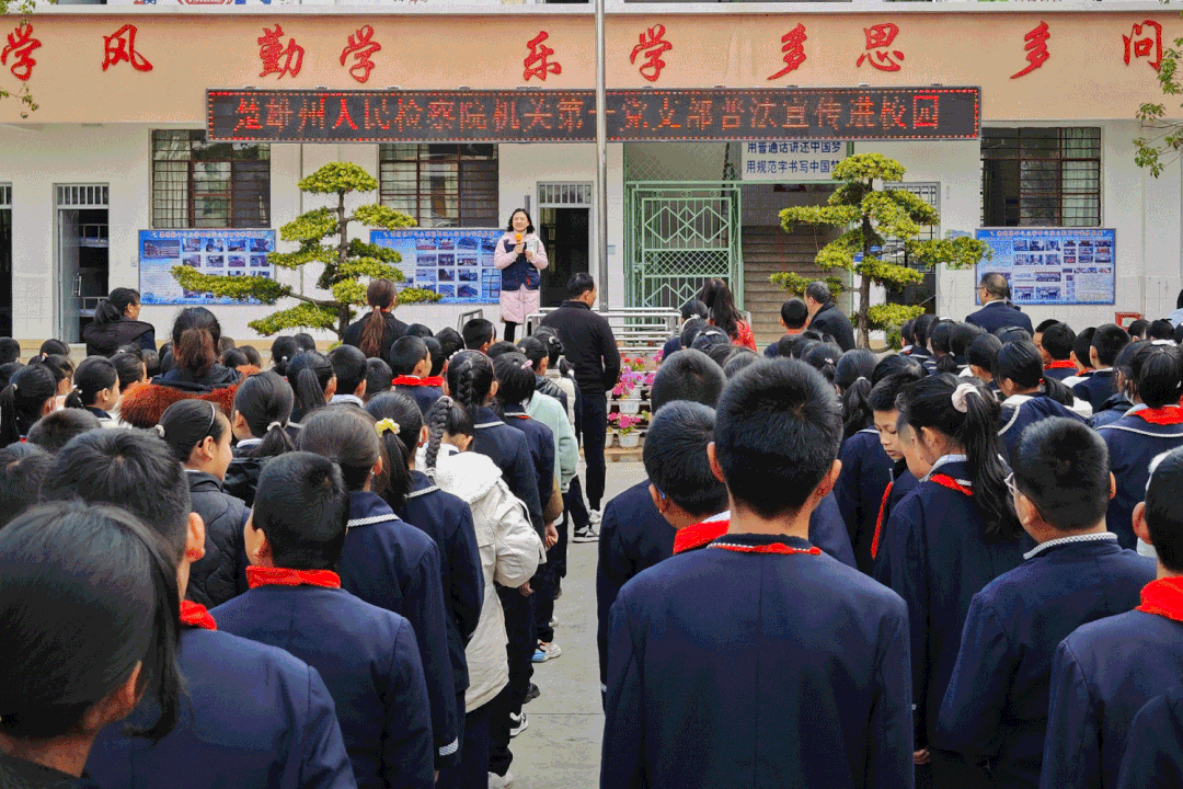 在楚雄市鹿城镇中心完小,检察干警通过与同学们开展互动交流、你问我答的形式,现场向师生们宣传讲解了《未成年人保护法》《预防未成年人犯罪法》、侵害未成年人案件强制报告制度等,同时发放了防性侵、防校园欺凌等法治宣传手册,从法律的角度引导提醒同学们要培养遵纪守法意识、约束好自己的日常行为、尊重团结身边的同学朋友,同时要勇敢地向不法侵害说“不”。普法宣传深深地触动了学生们的心灵,赢得了师生们阵阵掌声。